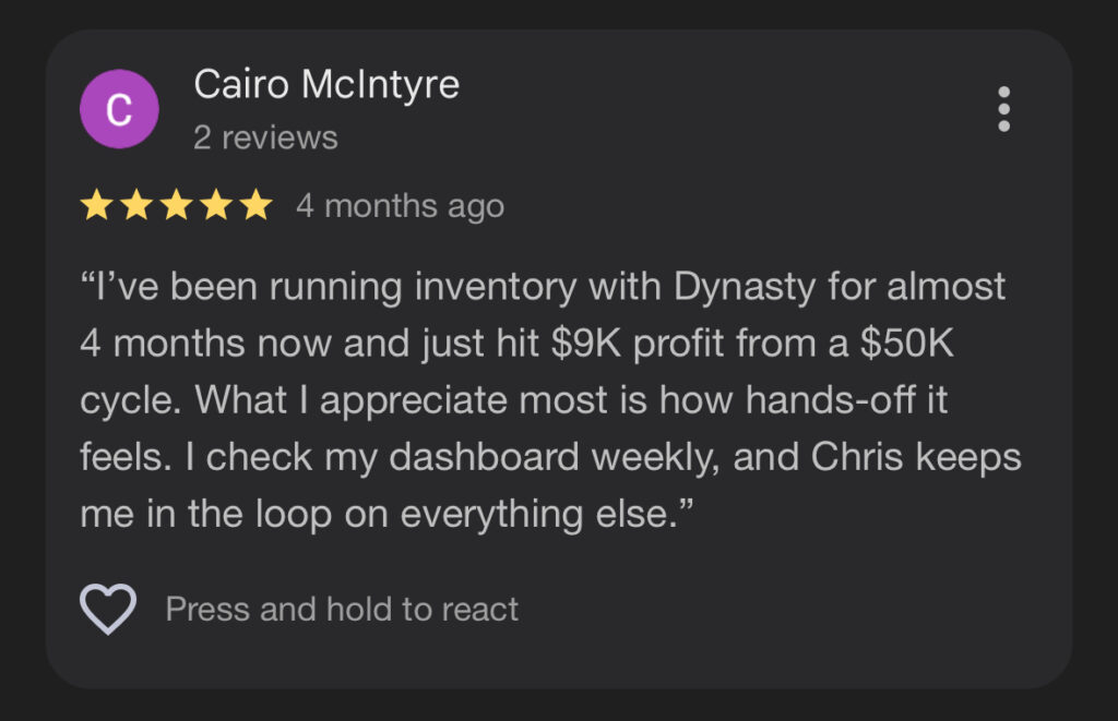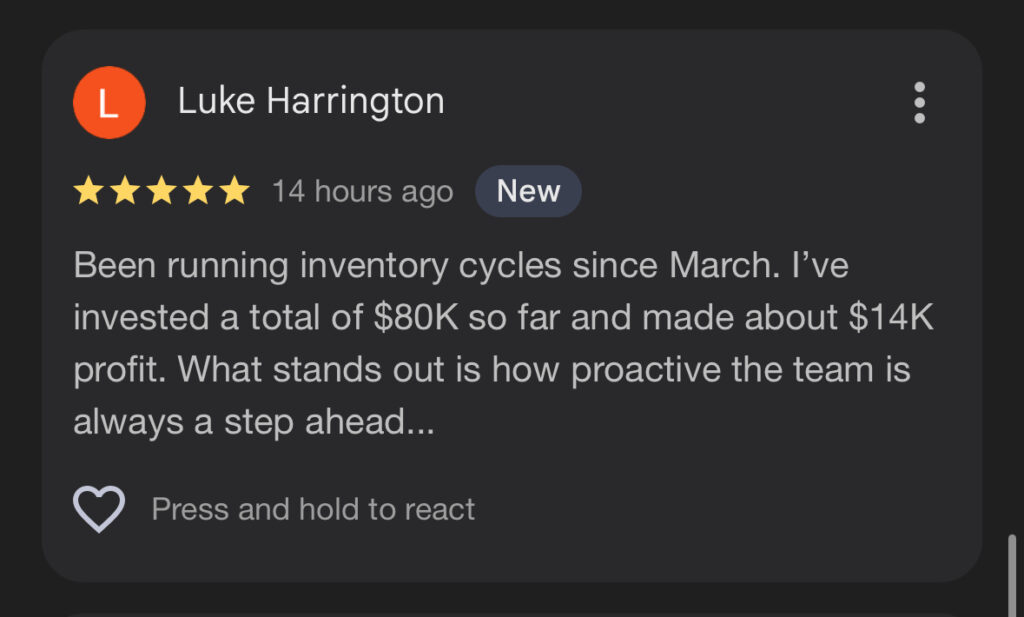 Each month, you’ll receive a full breakdown of your store’s performance — including sales, profit margins, inventory status, and payouts. Your manager will work with you to identify what’s working, adjust inventory buys, and reinvest capital into your top-performing SKUs to maximize growth.