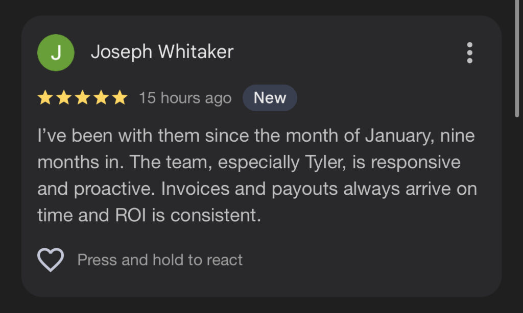 During your onboarding call, you’ll receive your personal login to our proprietary dashboard, where you’ll learn how to purchase, track, and collect payouts within the software — all in real time.